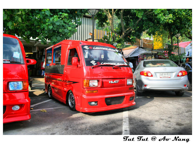 MaLamnya...kitorang jaLan² di sekitar pekan Ao Nang...nak cuci² mata dan cari tempat makan..cari punya cari...sedar² dah jaLan jauh dah...so pas je makan...kami hired satu teksi untuk baLik ke resort... iniLah teksinyer....hahaha....best sungguh..pengaLaman yang tak akan dapat di MaLaysia...